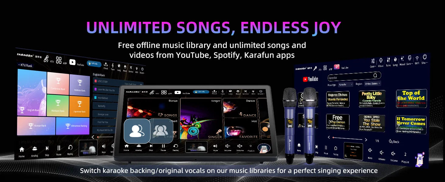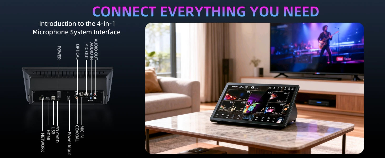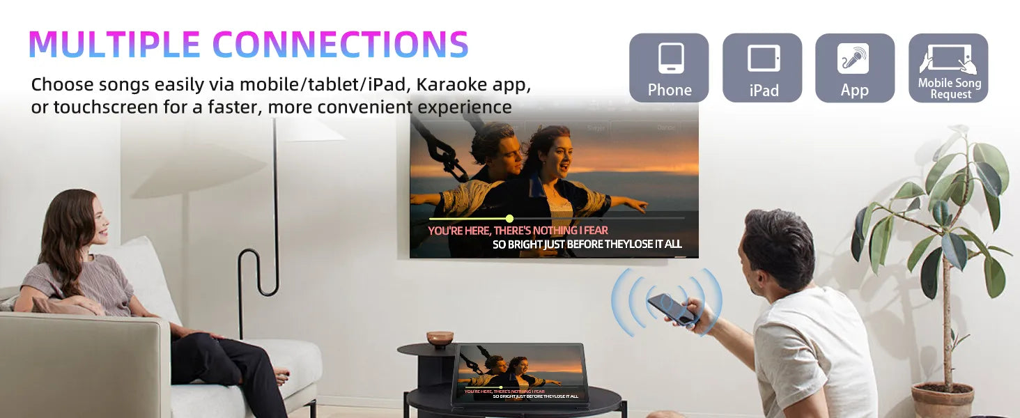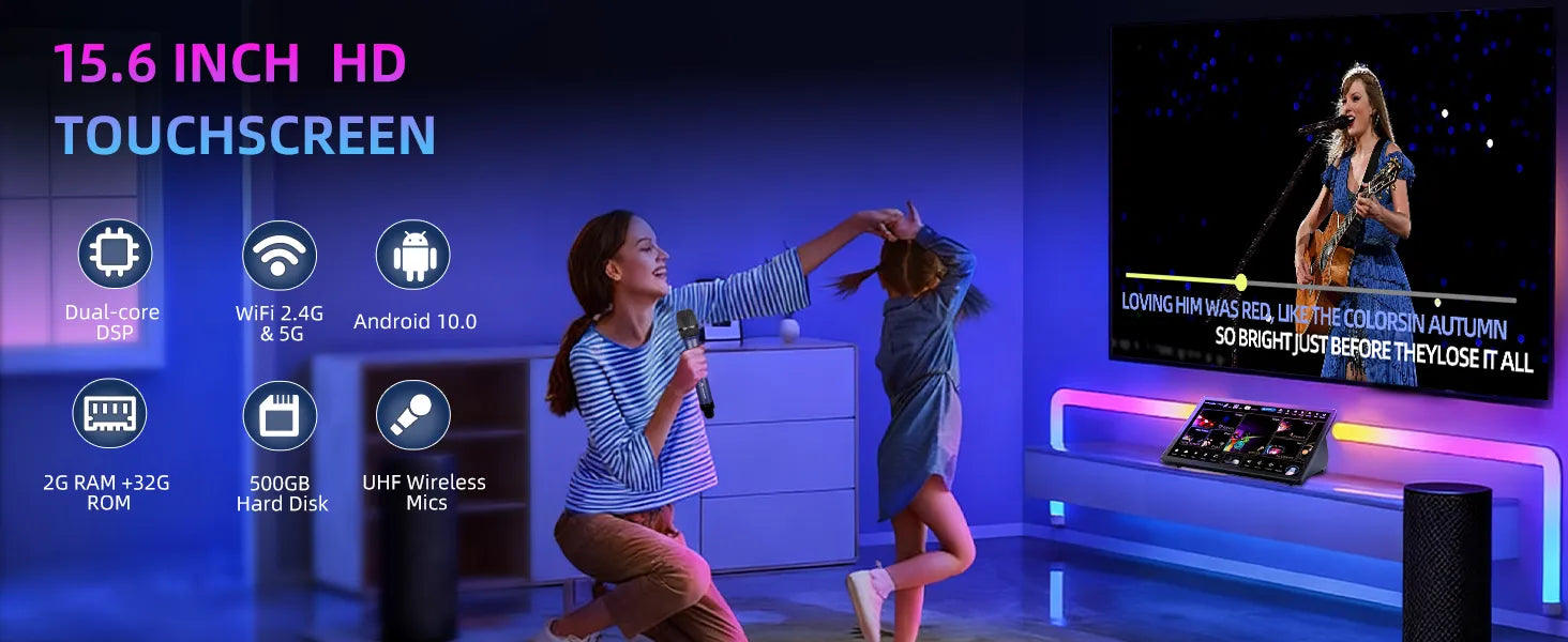 Immersive Visuals: Vibrant visuals for lyrics and MV playback. Perfect for creating a true home theater KTV experience.