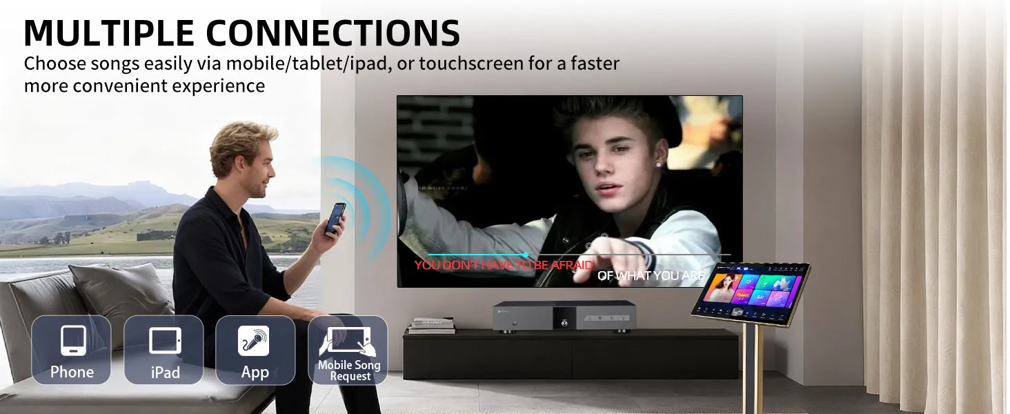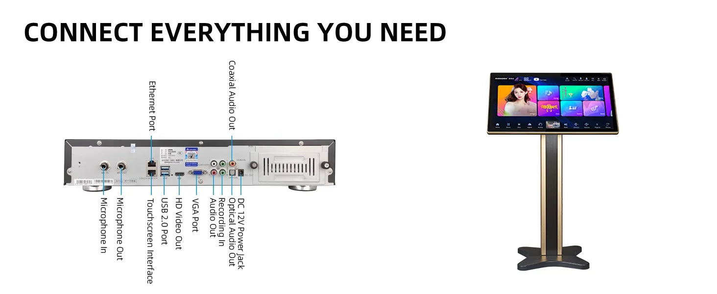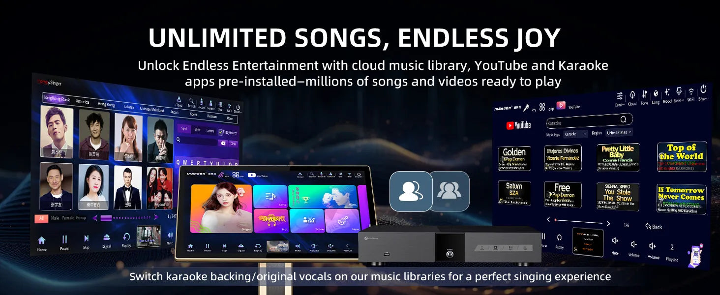 App Support: Built-in YouTube, Spotify, and Karaoke apps for endless global music.